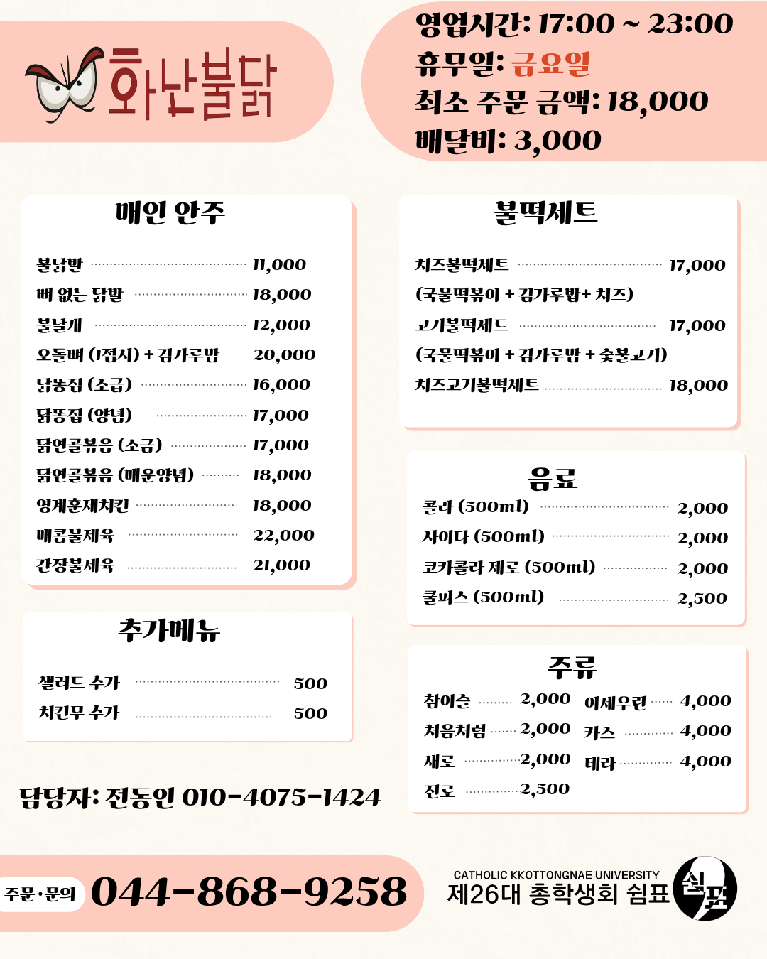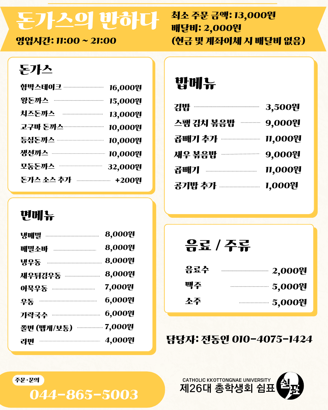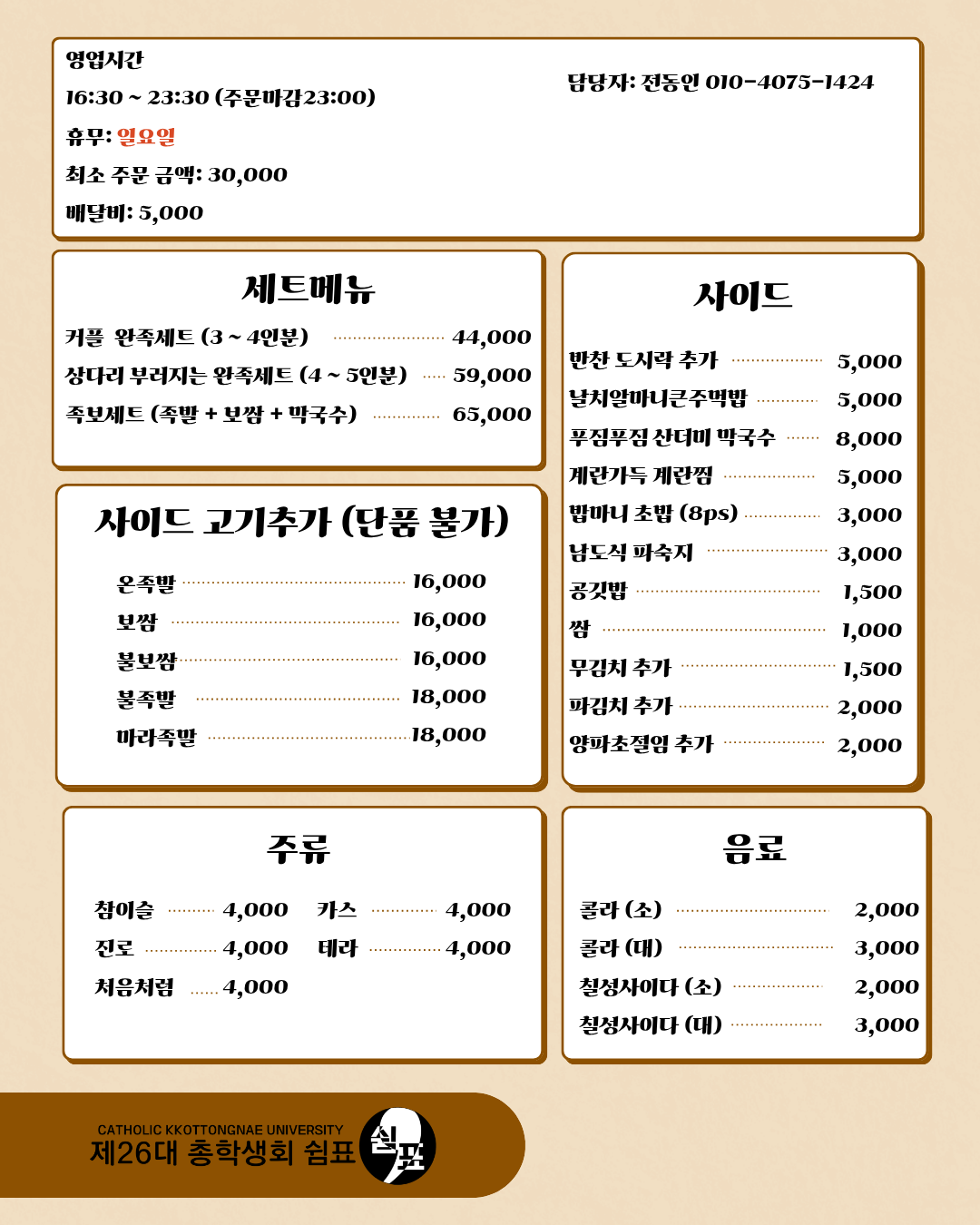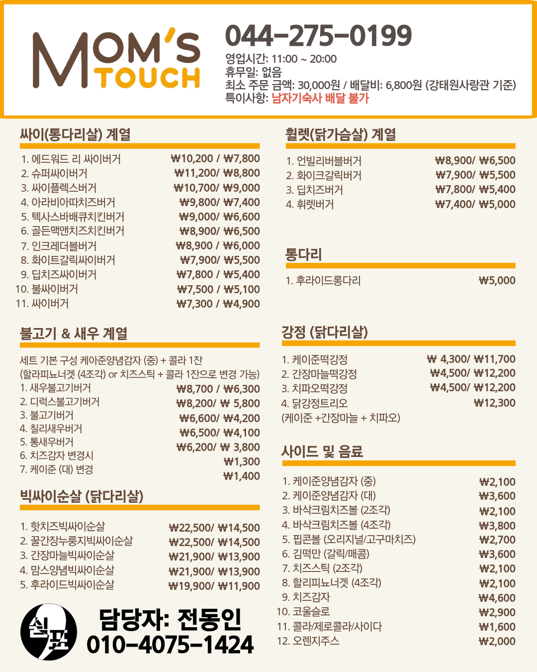 해당 메뉴판의 가격은 전화 주문 기준으로 작성되었음을 알려 드립니다.