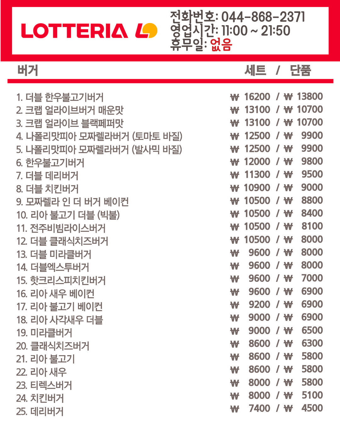 가격 변경 또는 잘못된 정보, 추가 업체 정보에 관한 내용은 문의 사항에 적힌 연락처로 연락 바랍니다.